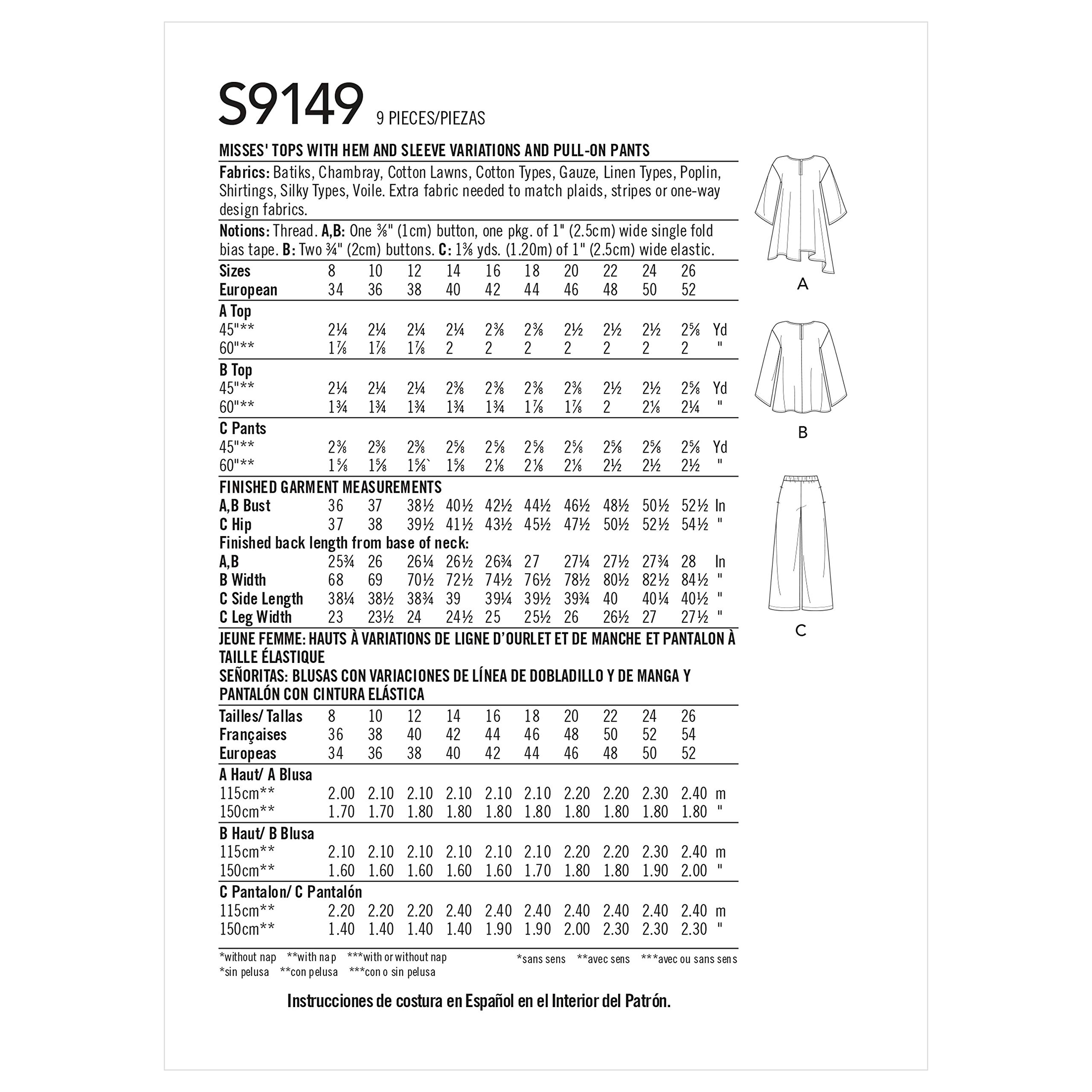 Amazon Com Simplicity Sewing Pattern S9149 Misses Tops Pants Size K5 8 10 12 14 16 Arts Crafts Sewing